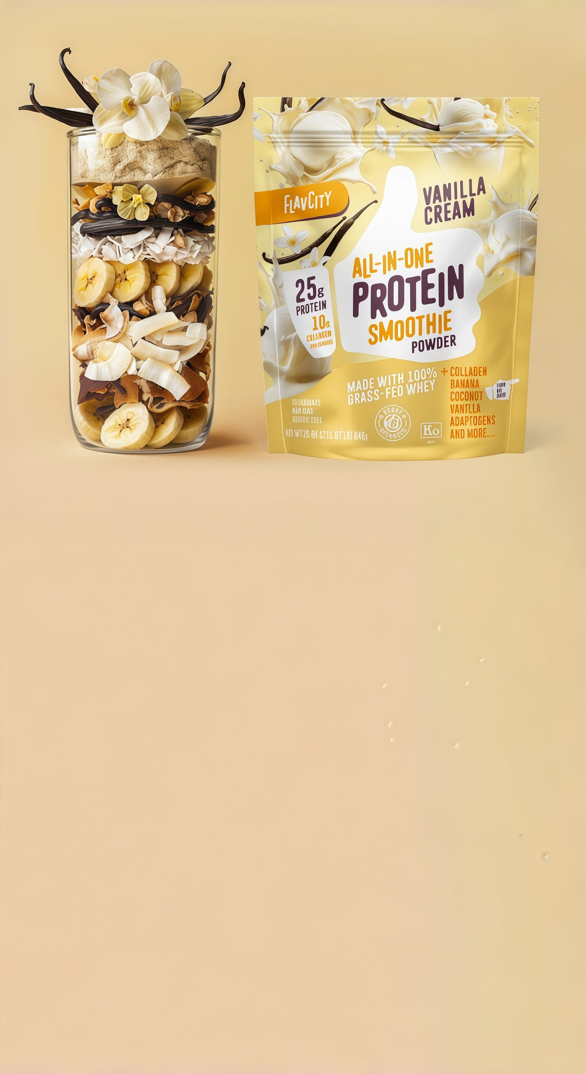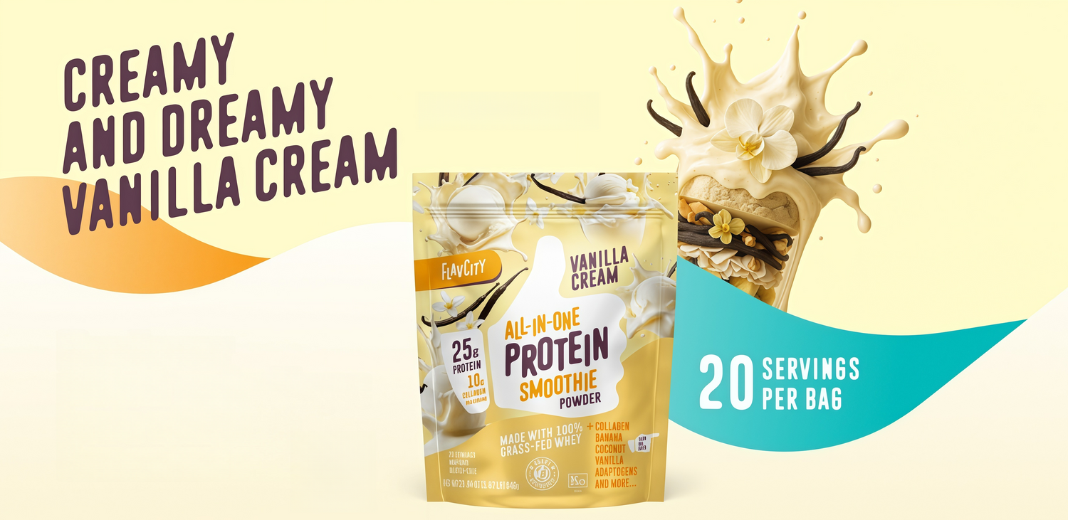 - 1 scoop FlavCity Vanilla Cream Protein Smoothie